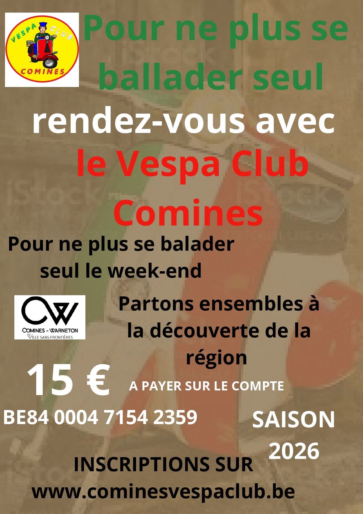 Pour l'inscription au club, quelques conditions sont à respecter, avoir une vespa, aimer le contact avec les autres, avoir l'envie de faire des kms et ne pas avoir peur de se retrouver autour d'une bonne table. Lors des balades internes du club, le premier verre de la première halte, vous est toujours offert.